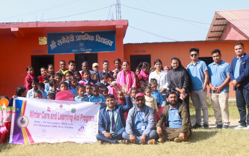 लायन्स क्लब अफ शुद्धोधनले समैदेवी प्राविमा जाडोमा न्यानो कपडा तथा शैक्षिक सामाग्री वितरण गरेको छ।शुक्रबार शुद्धोधन वडा न.२ मा अवस्थित विद्यालयमा अध्ययनरत ७३ जना विपन्न विद्यार्थीहरुलाई न्यानो कपडा(स्विटर) तथा शैक्षिक सामाग्री वितरण गरेको हो।कार्यक्रमका प्रमुख अतिथि शुद्धोधन गाउँपालिका अध्यक्ष विष्णुप्रसाद बस्याले लायन्सले देउसी भैलोमा संकलित रकमलाई विद्यार्थीहरुको भविष्य निर्माणका लागि शैक्षिक सामाग्री तथा जाडोमा न्यानो कपडा वितरणको काम सराहनीय भएको जिकिर गर्नुभयो ।उहाले लायन्स सङ्गस्ङ्गै सहकार्य र समन्वय गर्न पालिका सदैव तत्पर रहने कुरासमेत बताउनुभयो ।